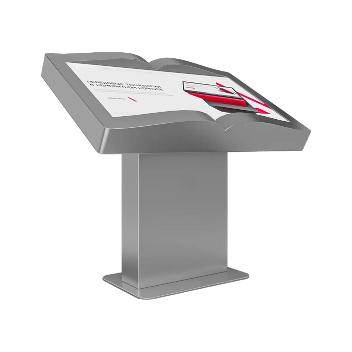 Интерактивный стол Book 55" – устройство, форм-фактор которого реализован в форме раскрытой книги. Механическая регулировка дисплея позволит настроить пользователям оптимальный угол для взаимодействия с программным обеспечением. Оборудование может быть дополнено информационным приложением или интерактивной книгой с эффектом пролистывания страниц.