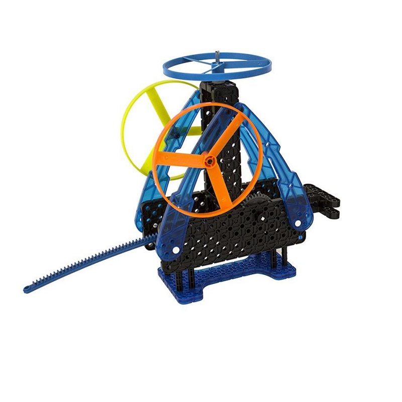 Набор конструкторов - Простые механизмы 1 предназначен для детей от 6 лет и старше, создан в качестве начального шага к изучению науки, технологии, инжиниринга и математики (STEM). Набор конструкторов развивает инженерное воображение с помощью очень эффективного подхода - вовлечения в игру. Из простых, легко скрепляемых защелкиванием частей конструкторов легко очень быстро собрать скоростную гоночную машину, быстрый летающий пропеллер для новых воображаемых воздушных приключений и впечатляющий бластер на основе шариковой пушки VEX by HEXBUG. Во время сборки конструкторов этого набора ребята сами увидят, как механизмы преобразуют потенциальную энергию в кинетическую, а несколько передаточных связей демонстрируют связь между скоростью и крутящим моментом.