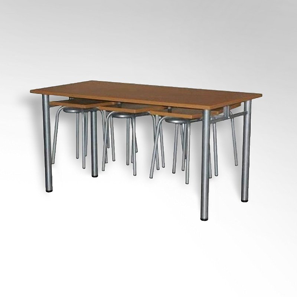 Главная Каталог Мебель и системы хранения Мебель для школьной столовой Стол обеденный 6-ти местый на металлокаркасе с навесами под табурет