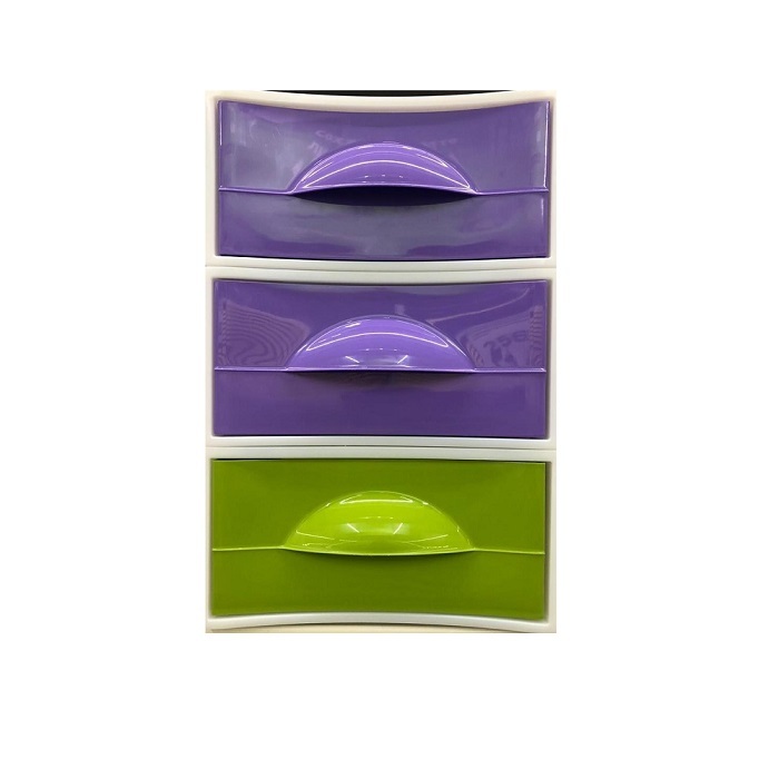 Удобная система хранения включает в себя три цветных пластиковых бокса с крышками.