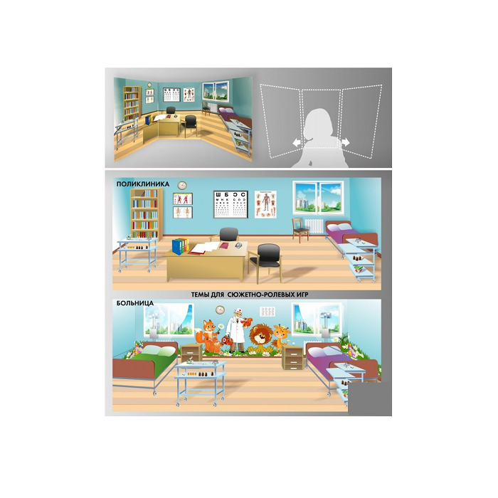 Стенд для сюжетно-ролевых игр 2-х сторонний (Поликлиника, больница)