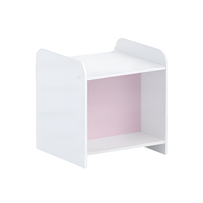 Конструкция стеллажа не имеет острых граней и углов. Тумба стеллажа установлена на пластиковые подпятники.
