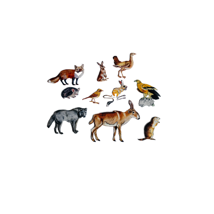 Благодаря данному набору ваш ребенок узнает названия основных животных, обитающих в степи, цветов, размеров. Также данный набор будет верным помощником в освоении счета. Подойдет он и педагогам для занятий в детских садах, студиях развития для коллективных занятий в качестве демонстрационного материала.