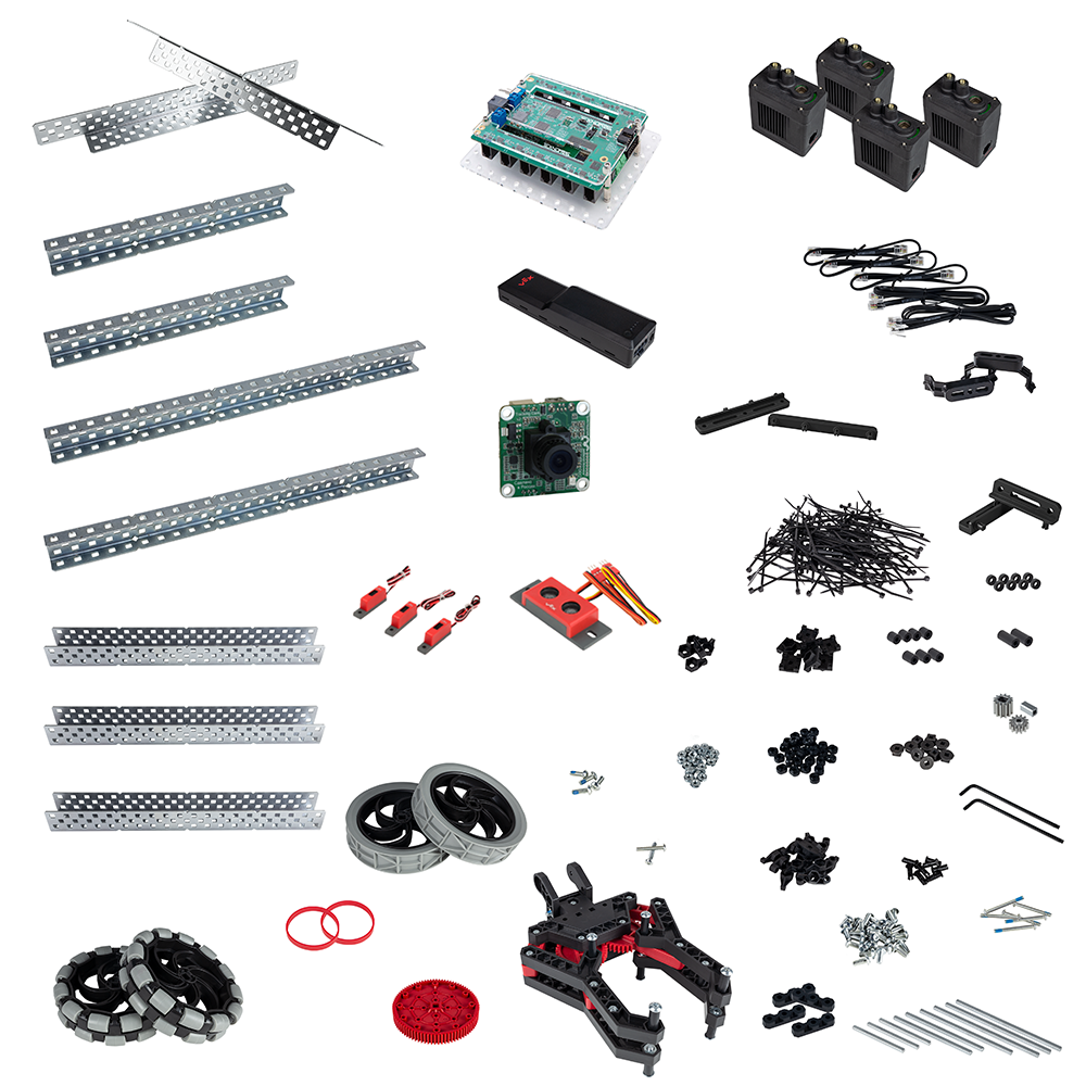 Набор робототехнический по механике, мехатронике и робототехнике включает в себя конструктивные элементы, соединительные элементы, электрические приводы, модуль технического зрения, контроллер для управления роботом.